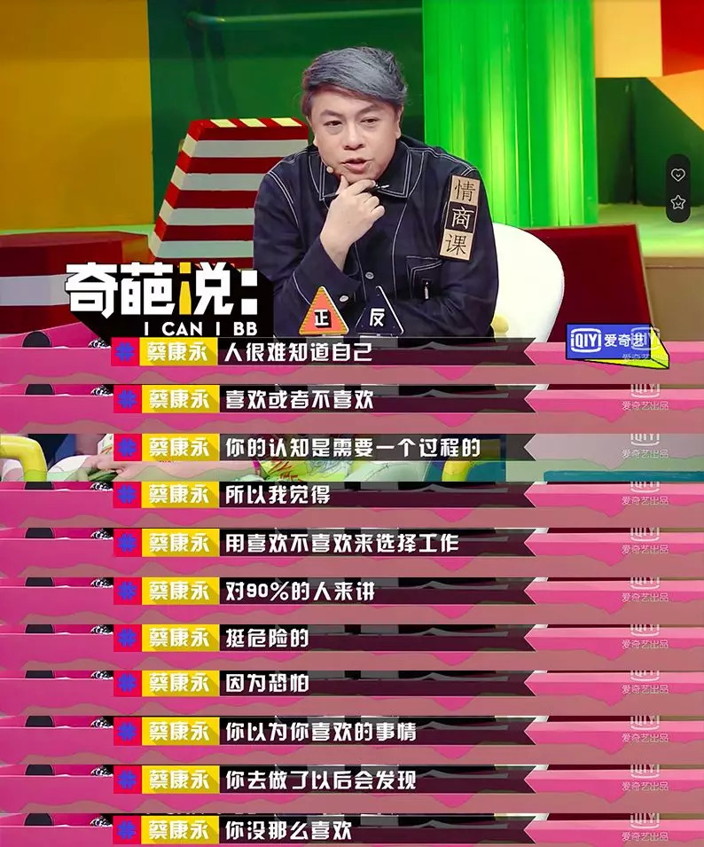蔡康永老师认为“喜欢”不是选择工作的标准,