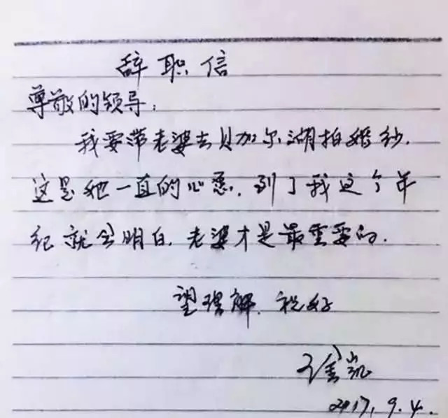 狗粮版的“辞职拍婚纱照,为啥?因为老婆最重要”。