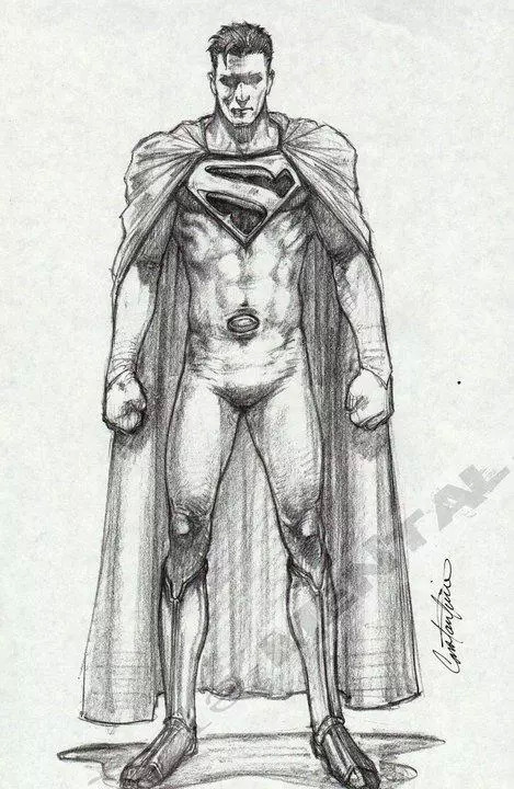 那么超人呢?“讽刺的是,我们很喜欢亨利·卡维尔,但当时并没选他。”希亚说。在这张亨利·卡维尔的试镜照片中,他正穿着超人的戏服。第二稿完成的时候,亨利差不多二十岁。据说亨利、杰森·贝尔、迈克尔·卡西迪还有《邪恶力量》的主演贾德·帕达里克都拍摄了试镜的视频,艾什顿·库彻也为超人这个角色进行过试镜。