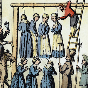 事态愈演愈烈,女性被无故指责为生来就是危险和强势的。她们的身体也遭遇责难,因为它们会导致无辜的人做出无法控制的行为。她们的性别使她们蒙羞受惩,而她们罪行的审判和执行都是由成群的强权男性来完成。