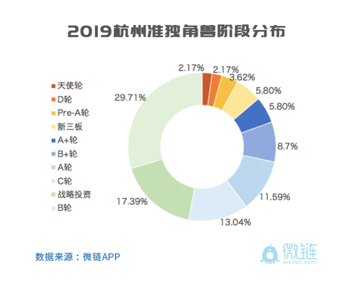 杭州准独角兽新增超过30家,新晋准独角兽企业67家。大部分准独角兽的融资阶段聚集在B轮,企业服务、医疗健康和电子商务成为准独角兽扎堆出现的领域。
