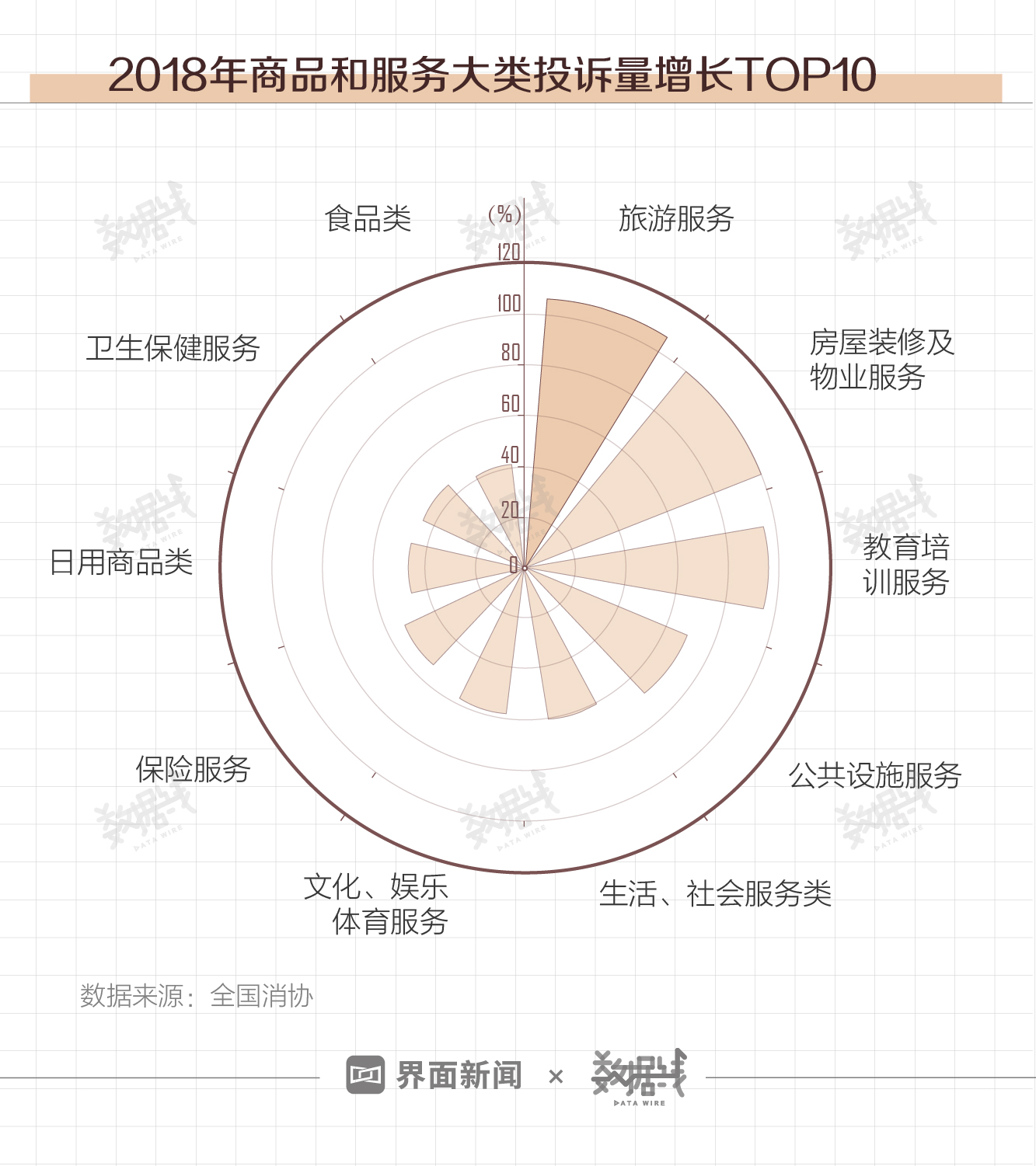与2017年相比,旅游服务、房屋装修及物业服务、教育培训服务三大类的投诉量增长最快,分别增长106.95%、100.67%和98.50%。