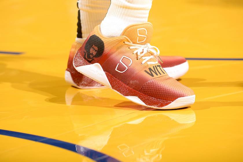 穿着K8IROS的丁威迪 还有一个宏大的计划——在2018-19赛季82场常规赛中,每场都穿一双不同的球鞋,客场比赛的球鞋会根据比赛地的历史人文来设计,主场则根据自己的兴趣和喜好来打造。