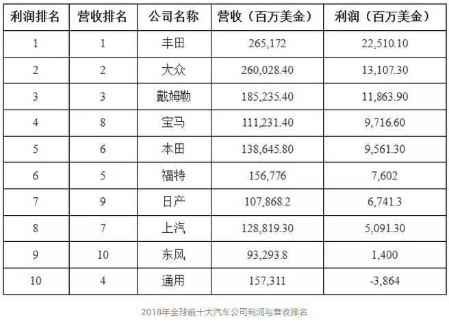 在2018年的《财富》杂志“世界500强”中,丰田排名第6位,这是全球所有汽车公司的最高排位。而且从利润来看,丰田公司的利润仍然排在第1位。在全球前十大汽车公司中,丰田汽车的利润几乎是排在第二位大众的两倍,比排名第6到第10的总和还要多。