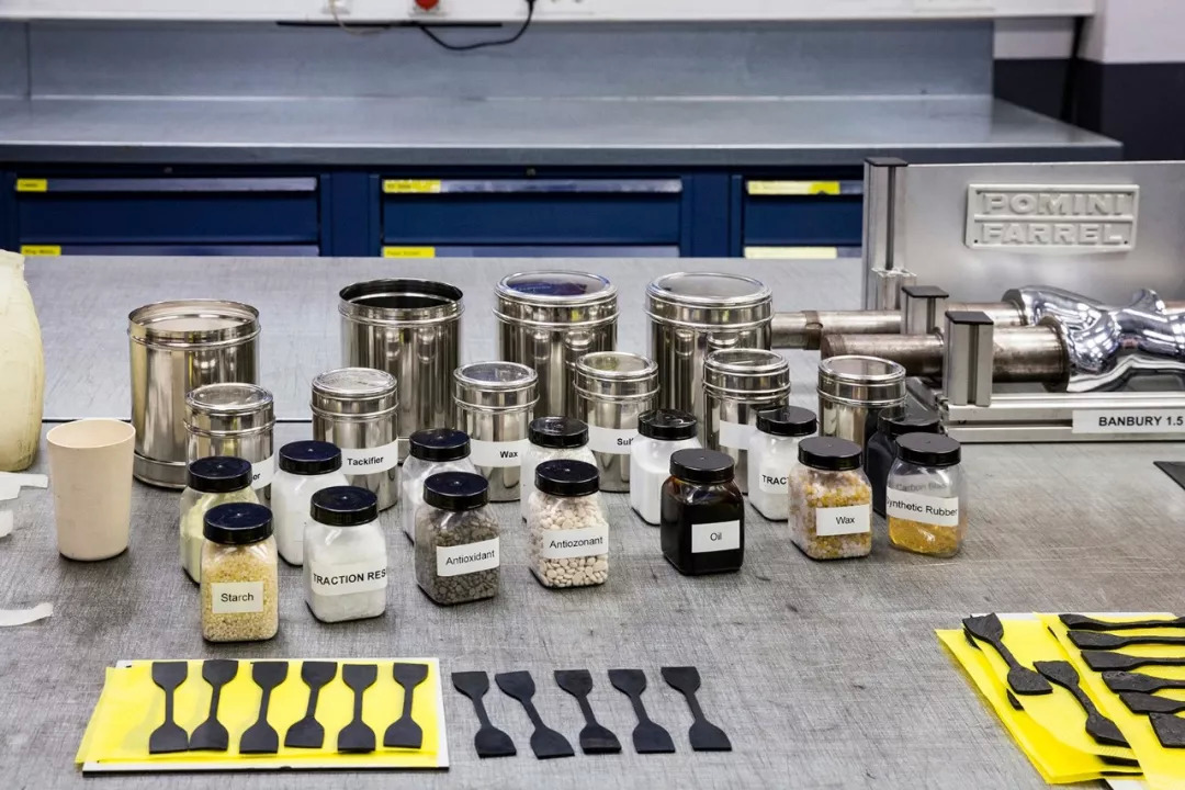 包子的配方需要水、面粉、鸡蛋等等原材料组成,而轮胎也是一样。轮胎的配方就复杂的多了,下面图片中就是轮胎中所需的23种常用配方材料。