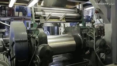 原料配比完毕后,接下来的就是把所有的材料进行打发混合将天然橡胶、合成橡胶还有添加剂混合成一整块表面温度达126℃的黑色“面团”,然后放到密炼辊压机将摊成橡胶大饼,排上帘布丝。