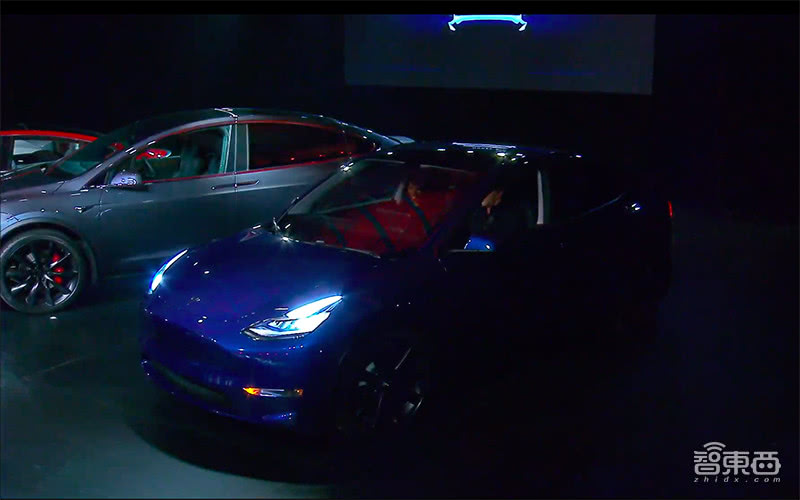 与其他车企常见的先讲特点再看车的流程不同,在Model Y环节伊始,一辆蓝色Model Y直接开上了舞台。