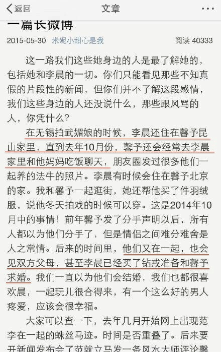 先是5月30日(周六),张馨予闺蜜发长微博爆料,称李晨和张馨予在2013年分手后已经于2014年复合,甚至李晨都准备了戒指打算向张馨予求婚,暗指范冰冰是小三。