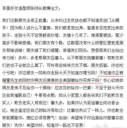 因网上有不少人揣测这位“霍先生”是霍建华,有网友在转发了李晨的长微博,也写道“霍建华哭晕:怪我咯”。