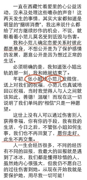 被戏称为范冰冰“忠犬”的李晨则在当天下午现身网络,作为两女相争的男主角,他终于开口了。他在声明中澄清范冰冰不是小三,而且亲切地称范冰冰而小范儿,前女友张馨予则被他称为“张小姐”,他对张小姐说的最后一句话是“愿你走好,此生不再交集”......