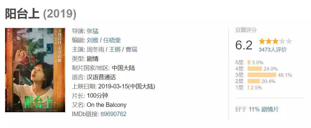 却还是由此引发了一场《阳台上》到底是不是圈钱烂片的两级化争议。