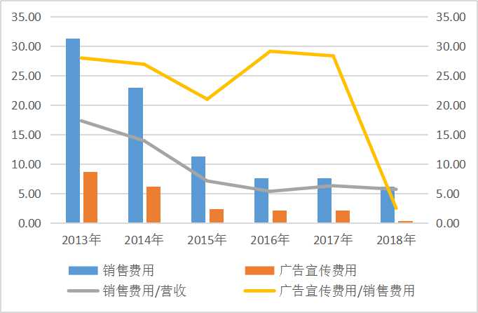 数据显示,2018年哈药股份的销售费用约为6.20亿元,同比下降近19%,与营收相对应,这也是公司销售费用连续第五年下降,占营收的比重从2013年的17%下降至不足去年的6%,已远低于多数医药企业。
