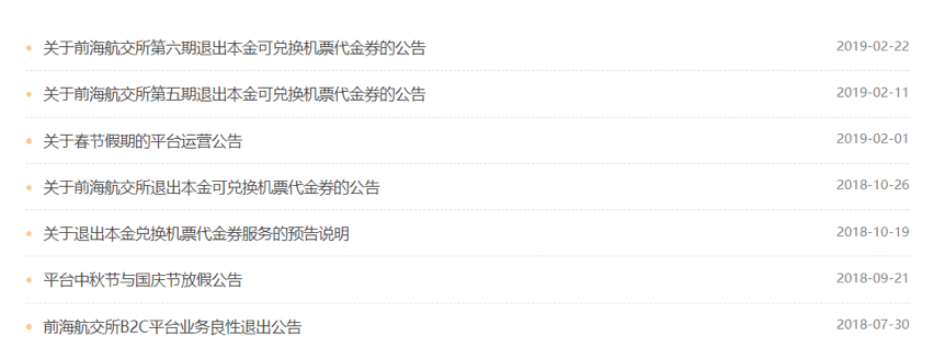 2018年7月30日,前海航交所曾发布公告称,在政策要求和海航集团“聚焦主业”业务调整的背景下,公司决定主动退出B2C业务,其他主管业务将不受影响,继续开展运营。