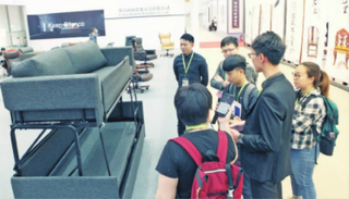 “传统的沙发床家具都是水平推移打开,而我们研发的这款沙发床则是向上面的空间发展,节省了占用面积,也不用因为支床而移动沙发床周围的家具。”该公司外贸部经理梅逸诚向记者演示了沙发床的展开和收纳。