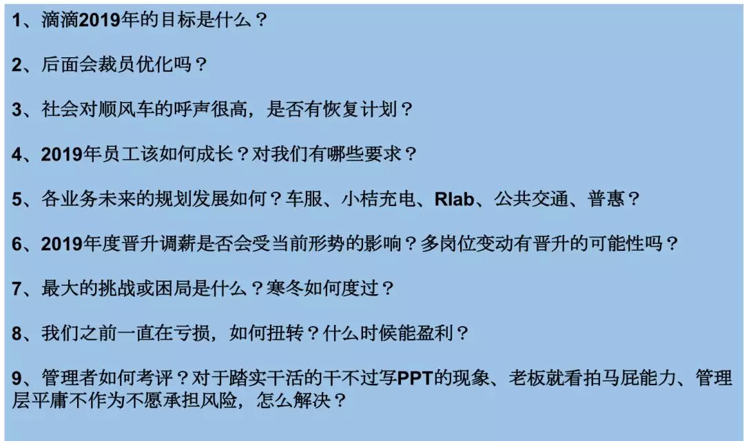 一个多月前,滴滴出行创始人兼CEO程维给13000名员工召开全员会,会前所有员工收到的邮件里罗列了10个关乎滴滴生存和发展的重大问题,顺风车是否恢复放在第3个,仅次于公司新年目标和裁员计划。