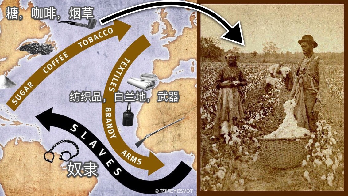 18世纪,棉纺织业在欧洲兴盛,棉布成为日常生活的一部分,物美价廉,设计时尚的手套、睡衣、帽子等棉制品全球热销。就在迎合非洲、美洲审美和需求的时候,东印度公司的生产力跟不上了,因此,扩大欧洲棉纺织品的生产量被提上日程,种植园经济又一次走进历史舞台(11世纪,欧洲在地中海地区曾建立甘蔗种植园)。
