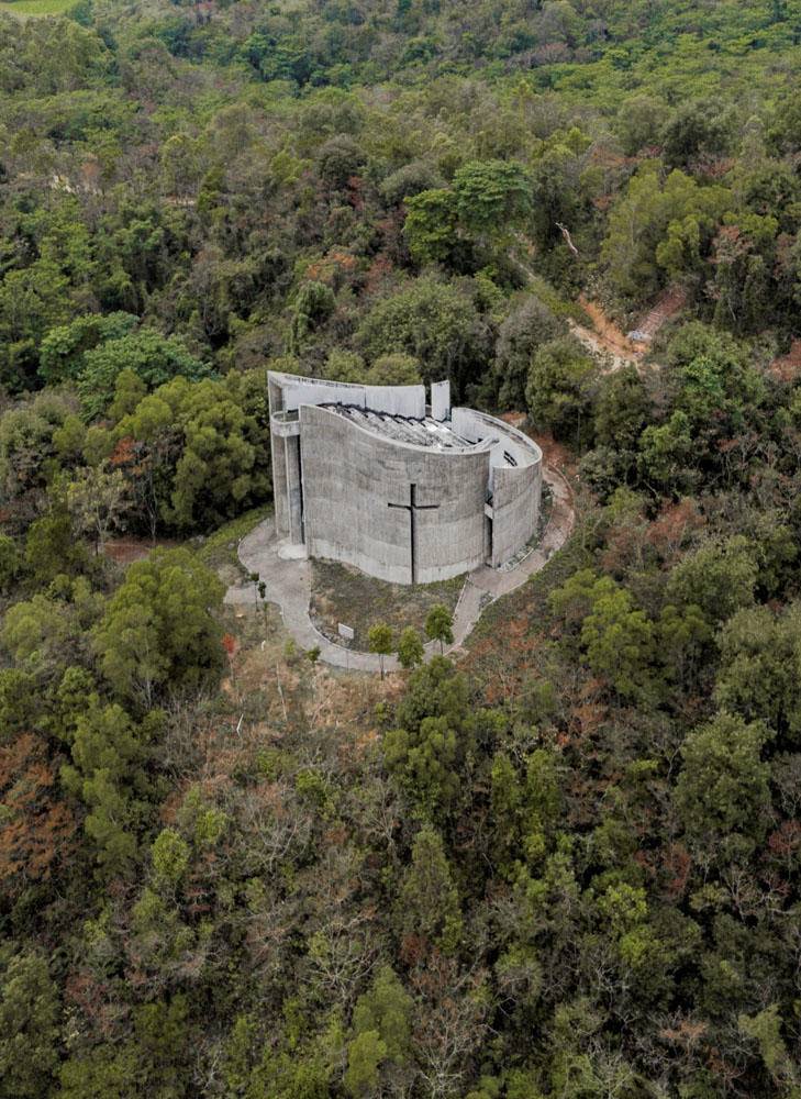 作为粗野主义建筑爱好者,这个教堂在很早之前就有所了解,当时就被它的外形吸引,而镂空的十字架造型又跟安藤忠雄的“光之教堂”有异曲同工之妙。此教堂建成于2011年,其外墙墙体以竹模板现浇混凝土进行建造,保留了竹的独特纹理。