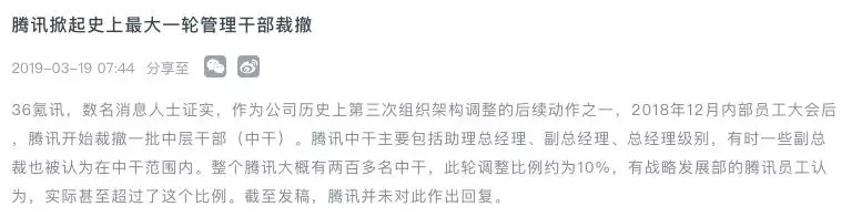 前几天,一个消息刷屏了,就是腾讯宣布要裁掉10%的中层干部,再加上京东和华为都有类似的论调,中层一下子成为一个高危的位置。
