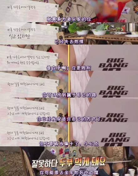 权志龙在团综里写给李胜利的话(韩国有从警局出来就要吃豆腐的习惯)