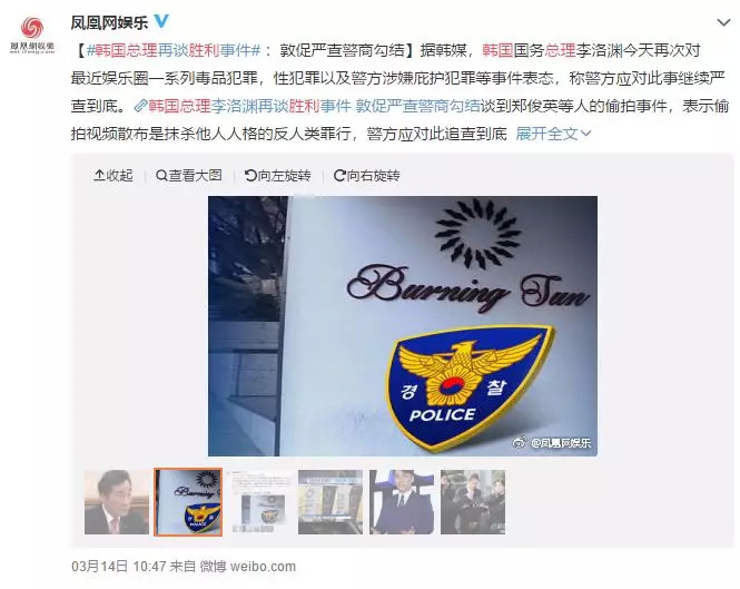只不过,年初的一段视频撕裂了这一切。从打人视频中警察的表现追查出夜店与警察勾结,夜店经理承认贿赂警察,引起了社会各界对警察腐败问题的关注;两名女子先后爆料曾在胜利的夜店里被下药迷奸,随后胜利与朋友的聊天记录曝光,其涉嫌非法拍摄并传播性视频;性交易中介嫌疑、逃税、海外赌博、吸食可卡因、违反《食品卫生法》……韩国总理李洛渊两次表态要“赌上警察的命运彻查此事”。