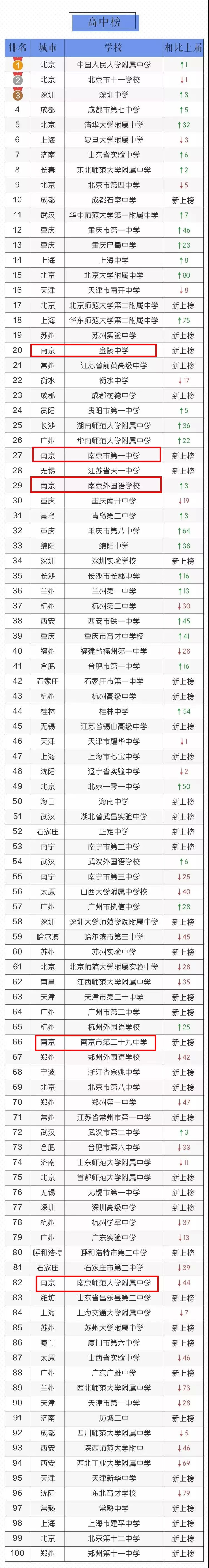 南京上榜的5所学校分别是金陵中学、一中、南京外国语学校、二十九中、南师附中。高中不再属于义务教育阶段,因此没有学区房之说。