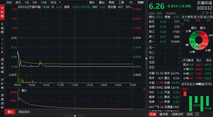 截至3月26日收盘,誉衡药业(002437.SZ)、软控股份(002073.SZ)、天壕环境(300332.SZ)、银邦股份(300337.SZ)、空港股份(600463.SH)、华胜天成(600410.SH)等纷纷跌停。