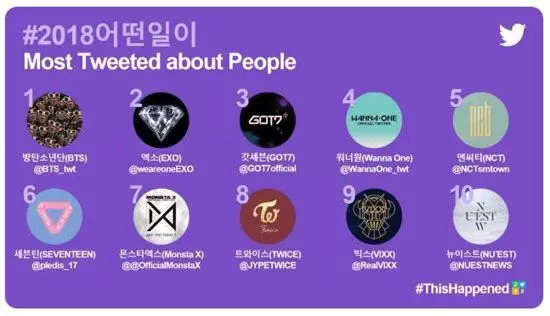 2018年12月5日,推特发布的年末统计数据显示,防弹少年团(@BTS_twt)成为全球话题量最高的账户,同时成为美国话题量最高的名人和音乐人。