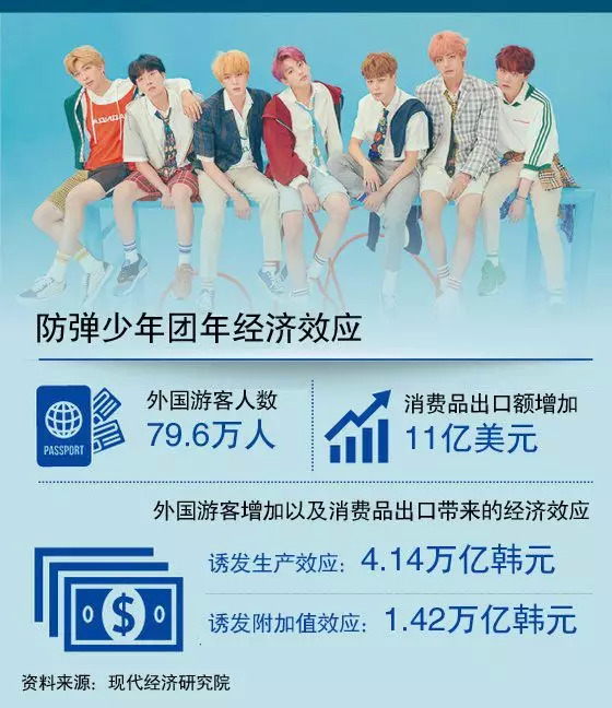 现代经济研究院数据显示,在BTS出道后的10年内(2014年~2023年),其所创造的诱发生产效应将高达4.14万亿韩元。
