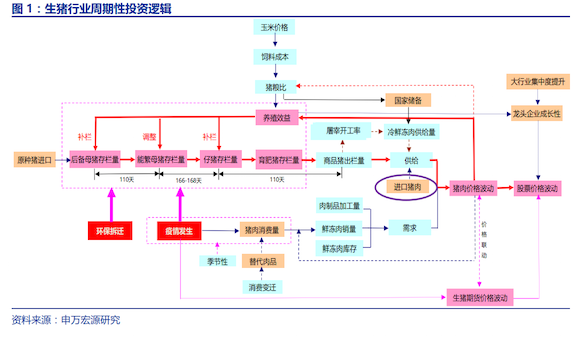 我们建立了完整的生猪行业周期性投资逻辑框架,猪价由供需关系决定,相对供给,需求较为稳定,因此供给是影响价格的核心变量。影响供给的因素包括:盈利周期下的供给波动(蛛网模型)、突发因素下的供给波动(如疫情、环保拆迁等),且屠宰厂与养殖场的博弈可扩大当期波动幅度。
