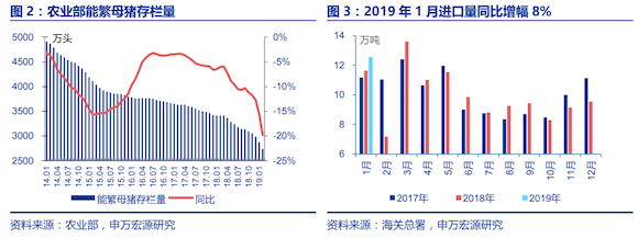 为了弥补部分产能缺口,中国将增加进口。2019年1月中国猪肉进口量12.55万吨,同比增幅8%,1月份已经开始呈现出出口量增加的趋势。3月份14日,美国农业部公布的数据显示,中国自美国进口了2.38万吨猪肉,这是自2017年4月以来中国最大的一笔对美国猪肉的进口,也是自美国农业部2013年开始跟踪猪肉出口以来的第三大出口订单。3月22日,第一批来自葡萄牙的24.99吨冷冻猪肉22日抵达天津口岸,这是中国与葡萄牙签署输华猪肉双边议定书后,首批抵达中国港口的葡萄牙猪肉产品。为了弥补国内产能缺口,增加进口是途径之一。