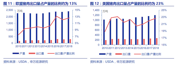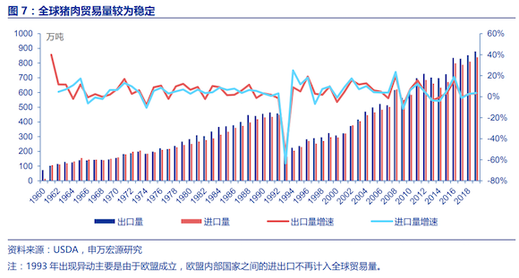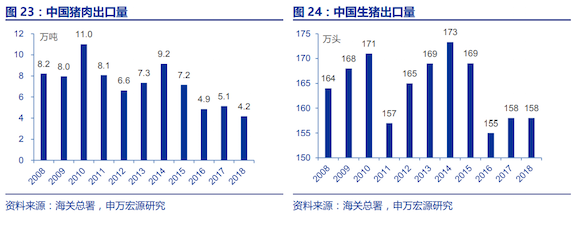 此外,进出口、国储虽然体量不大,也会在一定时间内、在一定程度上影响价格波动,本文我们将重点对猪肉贸易进行分析——在非洲猪瘟影响下,中国增加进口将如何影响国内外猪价。