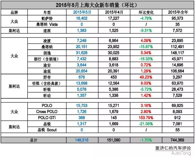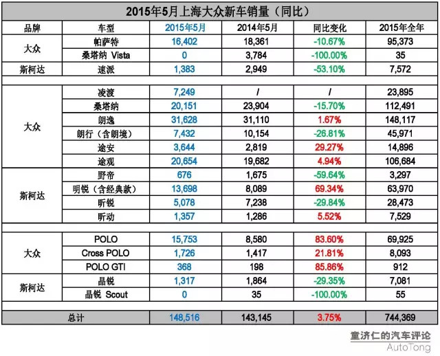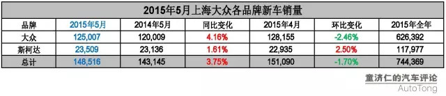 2015年5月,上海大众实现新车销售148,516辆,同比增长3.75%,环比微跌1.70%。今年1-5月,上海大众累计销售新车744,369辆,同比增长3.99%。在单月销量和累计销量上,上海大众继续位列国内车企榜首。