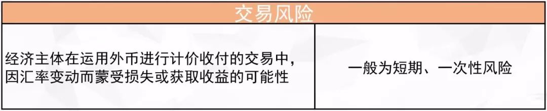交易风险是指经济主体在运用外币进行计价收付的交易中,因汇率变动而蒙受损失或获取收益的可能性,一般为短期、一次性风险。