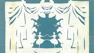 有舞蹈演员的舞台造型,剪纸上方是安徒生的手迹: