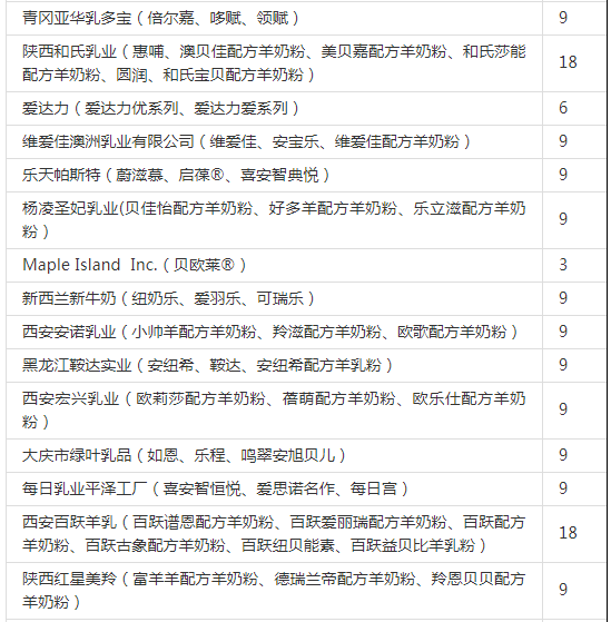 此次公布的名单上还有来自荷兰的爱荷美奶粉(ekobaby),该品牌拿到了三个配方。