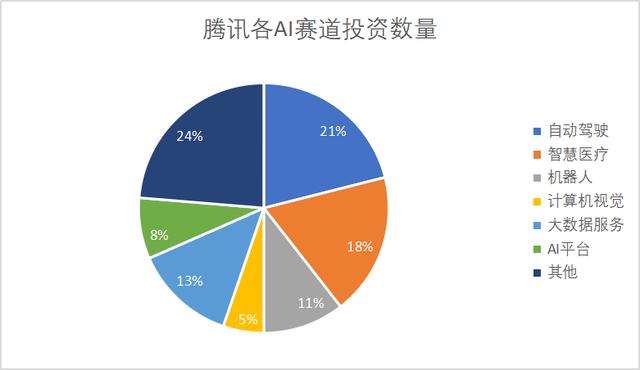 在腾讯的各项AI投资中,自动驾驶领域在数量上以及金额上都占据了最多的位置。