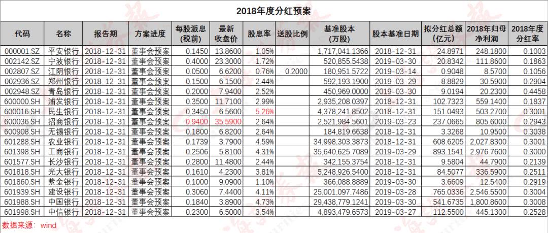 小编梳理了上市银行2018年度现金分红预案情况,大家一起来围观这些银行诚意如何。