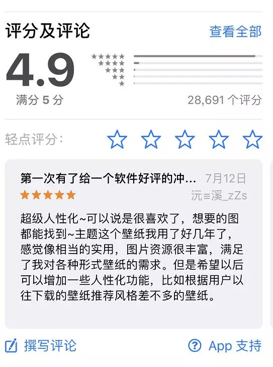 这个叫克拉壁纸的 App 成功引起了世超的注意,它在 apple store 上高达 4.9 的评分说明了一切。