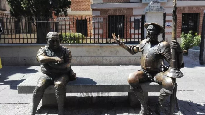 到达阿尔卡拉的人一定不会错过塞万提斯故居 (Museo Casa Natal de Miguel de Cervantes),因为堂吉诃德和桑丘的铜像就坐在门前。塞万提斯的家是一座二层红色小楼,博物馆复原了16、17世纪的建筑陈设风貌。一楼是起居室、厨房和餐厅,家具、用品按照曾经使用过的原迹摆放着。二层是塞万提斯出生的卧室,此外还有一个陈列室,陈列着《堂吉诃德》的各种版本和译本,包括中文译本。