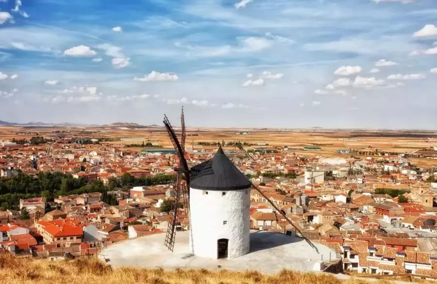胡斯卡的“蓝精灵故乡”的名号未必让人信服,但是孔苏埃格拉则是地道的唐吉坷德的战场。塞万提斯描绘的堂吉诃德大战风车的场景就发生在小镇旁边的风车群里。