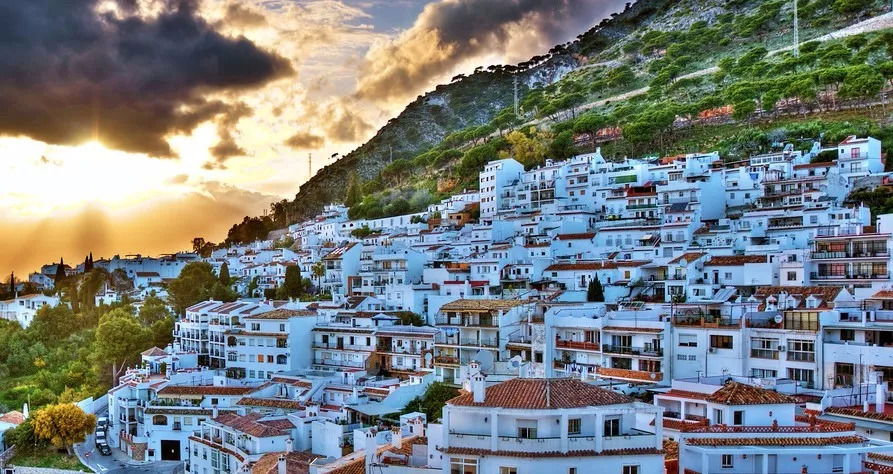 小镇上已有上千年历史的白色建筑群坐落在海拔428米的山峦上,俯视着地中海,也眺望着大海对面的非洲大陆。