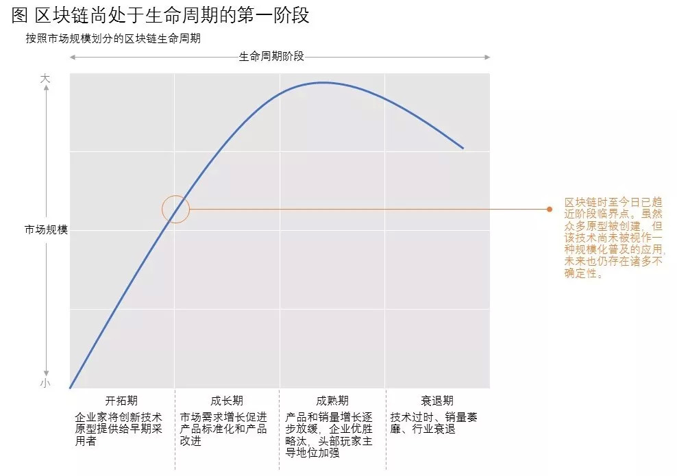 在许多应用中,区块链可以说仍然停留在生命周期的第1阶段。绝大多数的概念验证(POCs)处于或即将结束开拓性模式,许多项目未能进入C轮融资。