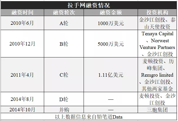 梳理拉手网过去融资情况发现,在2010年6月,它完成由金沙江创投、泰山天使的1000万美元A轮投资。在成立1年1个月的时间里,它连续获得3轮融资共计1.71亿美元,金沙江创投连投三轮,估值更是从100万美元飙升到11亿美元,成为名副其实的独角兽。拉手网一跃成为最短时间估值最高的互联网企业。
