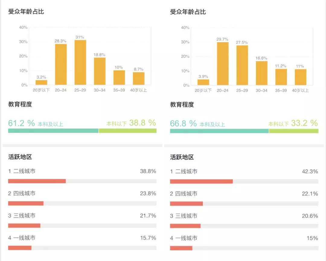 对比用户画像就能发现,观看《反贪风暴4》的25-34岁之间的观众比例高于《雷霆沙赞!》,三四线城市的观众占比也超过后者。
