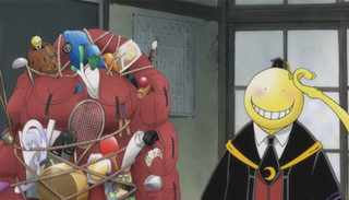 比如说《暗杀教室》。这个片子讲一个将要破坏地球的怪物成了一个私立学校最差班级的老师,而这个班的学生如果能在一年内暗杀掉这个老师,就可以获得高昂的奖金。表面上,这个设定很不健康,鼓动阴谋、暗杀、人与人的不和谐,但内在里,这个异乎寻常的世界观却并没有体现出其凶残的一面,反倒彰显温存。学生与他们要暗杀的对象“和谐共处”,在这个怪物老师的“呵护”下,他们不仅学习成绩上升,更是找到了人与人相处的真谛和生活的意义。每个新来到班里的暗杀者,最后都被这种暖流同化。