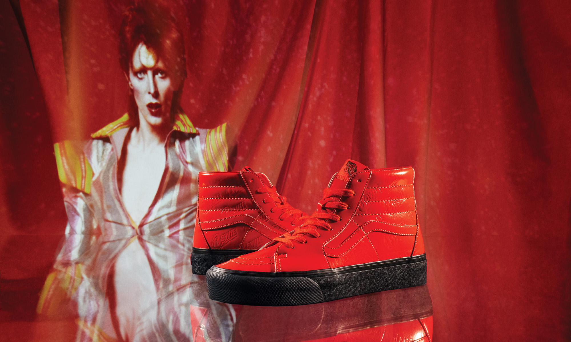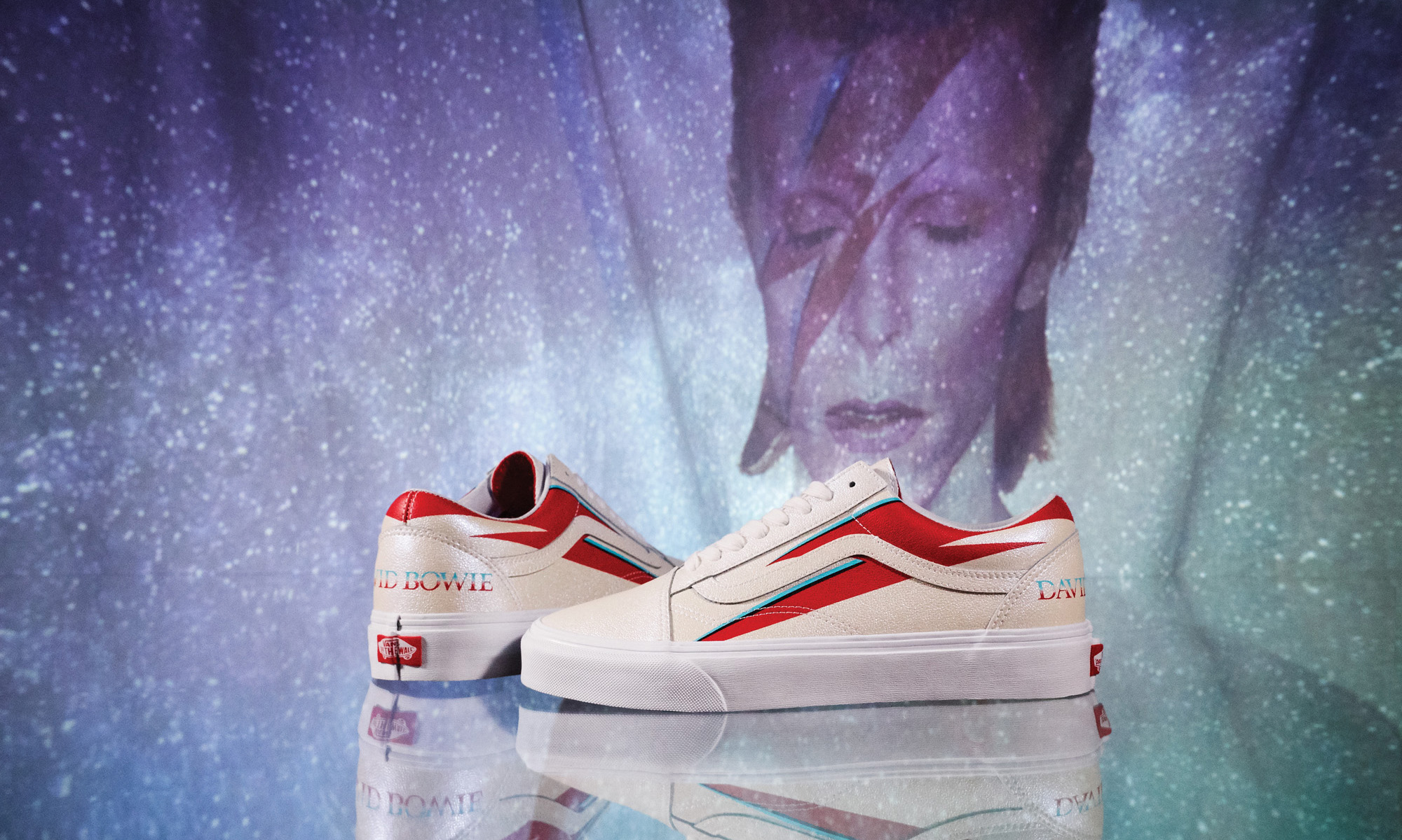 此番Vans X David Bowie的联名系列更是将这摇滚巨星的众多代表作诠释于单品之中,涵盖Sk8-Hi、Era、Old Skool和Slip-on等经典鞋款以及T恤和帽子等单品 。