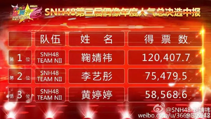 2016年,她在SNH48的人气投票总决选以断层的票数拿下了第1名的成绩,并且第二年连霸冠军。