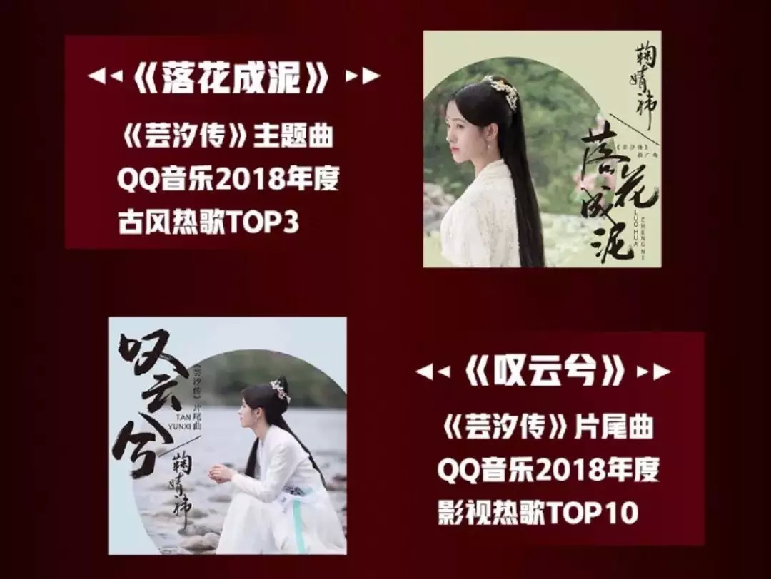 音乐方面,为《芸汐传》演唱的《叹云兮》《落花成泥》等歌曲成绩亮眼。
