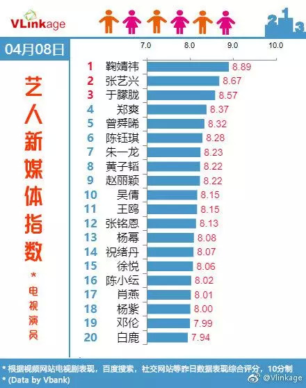 尽管鞠婧祎这一版“白娘子”有不少槽点,但是在艺人新媒体指数电视演员的排行榜上,她超过同期有作品播出的张艺兴和郑爽,连续5天夺得第一,指数一度高达8.99。