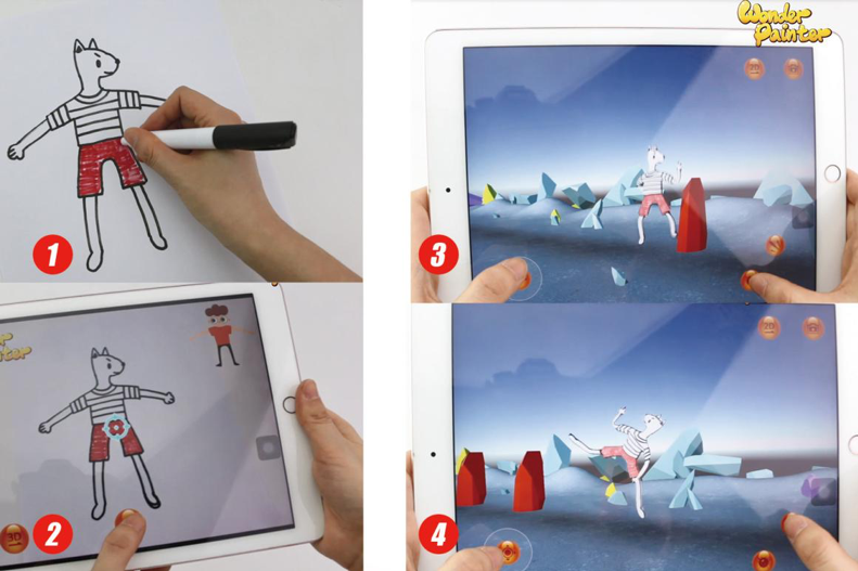 创始人、前微软研究院自然人机交互技术专家曹翔博士向记者解释道,传统的AR设备,都必须依赖卡片等特定道具,或者需要提前对内容进行预设。而由小小牛独家研发的Wonder Painter技术,无需任何特定道具,可以将任何物体变成2D和3D的角色,包括图画、玩具、橡皮泥、甚至真人,并且可以利用这些角色创作自己的故事或者玩游戏。